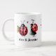 Celebrate love with this adorable personalized ladybug couple mug, featuring a charming illustrated pair of ladybugs and custom names. Perfect as a romantic gift for couples, newlyweds, engagements, weddings, anniversaries, or Valentine’s Day.
