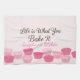 Celebrate the joy of baking with this “Life Is What You Bake It” design, featuring charming pastel cupcake liners and elegant script typography. The soft pink tones and warm brown lettering create a sweet, welcoming aesthetic that blends modern farmhouse charm, vintage baking style, and playful kitchen humor.