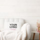 Easily personalize this Personalized Logo and Text Corporate Lumbar Pillow with text, company, coordinates or house name, and business logo, photo or any image. A simple business design in neon pink and white colors fully customizable, grunge distressed typewriter font for a modern, warm, professional and clear look. The logo lumbar pillow are avaiable in small and medium sizes. Background color and fonts are totally customizable. No minimum order.