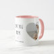 Featuring a clean, modern layout with soft neutral tones and a subtle blush interior, this custom mug showcases two cherished photos alongside a loving message and personalized names. It’s the perfect keepsake for Mother’s Day, birthdays, Christmas, or just because.