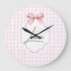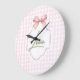 Personalized Luna Baby Girl Nursery Bow & Gingham Large Clock