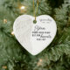 Made from smooth white ceramic with a glossy finish, this heart-shaped ornament includes a gold hanging cord and is designed to be displayed beautifully on a Christmas tree, memory shelf, or year-round remembrance space. The soft neutral tones and refined typography ensure the design remains gentle, comforting, and appropriate for memorial gifting.