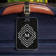 Elegant black and white monogram luggage tag. Design featured of trendy initial monogram in block capital letter on the front. Perfect gift for dad, father, uncle, husband, brother, grandpa etc.