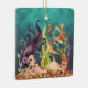 This holiday Christmas tree ornament features a beautiful mermaid and her seahorse friend. They are under the sea enjoying their day surrounded by seaweed and beautiful blue green water. It can be personalized with a name, date or any text that you wish to add.