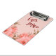 The clipboard features watercolor pink blossoms set against a fairer pink background. Imagine your name or the name of a friend centered in scripted font. Just edit the design and add in the name you prefer.