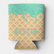 Get that drip with this awesome personalized can cooler with a mint green melting ice cream design on a waffle cone background. Personalize with a name in sporty aqua lettering.