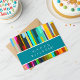 This modern and eye-catching birthday postcard features a vibrant, colorful abstract design with two customizable text sections. The front reads "Happy Birthday!" while the back offers "Our warmest wishes to you today and always!" for greetings or personalization, all set against a stylish and vivid ocean blue background.