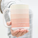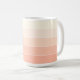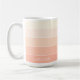 This trendy striped coffee mug features a pattern of horizontal stripes in pastel orange, light peach, coral, and white. It has space for customization or personalization with a name, monogram, or initials of your choice. With its unique, simple, funky, modern, and whimsical hipster design, this mug is perfect for the elegant artistic fashionista, artsy fashion diva, hip trendsetter, vintage retro art style enthusiast, or lover of geometric motifs.