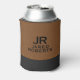 Keep your beverages chilled in style with our sophisticated Koozie design. Crafted from luxurious brown and black vintage faux leather, accented with leather stitches, this Koozie can be personalized with your name and monogram for a unique touch.