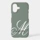 Personalized monogram elegant sage green iPhone 17 case . Elegant script typography in light gray color. Create your own personalized hex color smartphone cover with luxurious design template. Fancy swirly lettering that can be enlarged or made smaller and placed to your liking. You can also change all the colors of the letters and background. Classy monogrammed design for personal use, wedding couple or business. Add your own glamorous logo optionally. Chic blank template with pretty soft tone background image. Beautiful template with luxury style font. Also available for Samsung Galaxy S phones and other popular brands. Decorative phone accessories that can be completely customized with your own print. Change quantity for the best offer sale price.