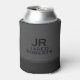 Keep your beverages chilled in style with our sophisticated Koozie design. Crafted from luxurious gray and black vintage faux leather, accented with leather stitches, this Koozie can be personalized with your name and monogram for a unique touch.