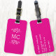 Personalized Monogram Initials Botanical Leaf Pink Luggage Tag