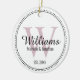 Personalized Monogram Newlywed Blush Pink Milgrain Ceramic Christmas Ornament. The dotted border is reminiscent of milgrain, which is a jewelry-detailing technique often used for engagement and wedding rings. The milgrain border adds both a modern and elegant style to this ornament.