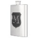 Personalized monogram stainless steel flask. Cool drinking Birthday gift idea for men. Make one for dad, husband, uncle, brother, grandpa etc. Personalizable initial letter. Manly shield emblem design