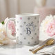 Featuring a soft pink & grey polka dot design, these coffee mugs can be customized with initials for a unique keepsake. Ideal for weddings, bridal showers, engagement parties, or rehearsal dinners, they complement pastel, modern, or floral themes.