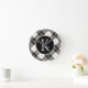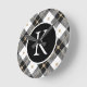 Personalized Monogrammed Black White and Gold Plaid Wall Clock
