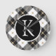 Personalized Monogrammed Black White Gold Plaid Round Clock