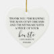 This ornament wasn't as large as I had envisioned it to be, but it was very nice, and my granddaughter and her groom loved it. Everything was very professionally done with beautiful printing and background scrolls. This was my first experience with Zazzle, but it won't be my last!