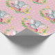 Personalized Name Elephant Baby Girl Pink and Gray Wrapping Paper