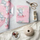 Personalized Name Elephant Baby Girl Pink and Gray Wrapping Paper