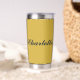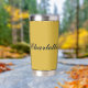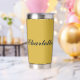 This personalized metallic gold insulated tumbler combines style and functionality for everyday use. Customizable with any name, it keeps beverages hot or cold for hours while providing a sleek, modern look. Perfect for work, school, travel, or gifts, this durable tumbler blends convenience with personalized elegance.