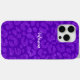 Personalized name modern stylish glitter purple leopard print pattern iPhone 15 Pro max case . a custom glitter blue ,elegant gift for occasions and holidays .