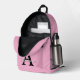 Personalize this pink background backpack with any last name and single custom monogram.