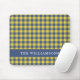 Personalized Name Preppy Blue Yellow Gingham Plaid Mouse Pad