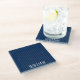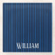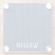 Personalized navy blue pinstripes glass coaster