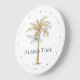We're on Island Time. Customize this tropical design featuring an artistic golden palm tree and navy blue text with your own special touch. You can change the text, palm tree and clock time markers to your favorite colors.