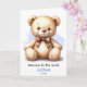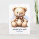 Personalized New Baby Blue Teddy Bear Card