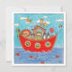 This beautiful print of a pen and watercolour illustration by Helen McCartney Designs features a group of sweet animals huddled together aboard Noah's Ark.