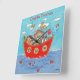 This beautiful print of a pen and watercolour illustration by Helen McCartney Designs features a group of sweet animals huddled together aboard Noah's Ark.