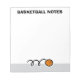 Personalized notepad with sporty basketball design. Custom memo writing note pad for men, women and kids. Cute school and office supplies with sports illustration. Handy for coach, player, fan, teacher, kids etc. Write down notes, scores, marks, stats and more.