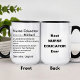 Great product, good delivery time, and an awesome idea for a gift! It was even better than I could have imagined, the customisation is incredible. The colour is perfect, it's dishwashable and microwaveable, the text print on the mug looks exactly like I wanted it to look and best of all, it's a large sized mug that you can drink plenty of coffee or whatever you want! I gifted this to my father and he loves it. He drinks coffee with that mug everyday :) I recommend.