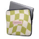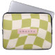 Personalized Olive Green Retro Checkered Wave Laptop Sleeve