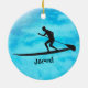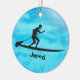 Paddleboarding Personalized Ornament Christmas 20XX. An paddleboarder poses on a board against a blue water background. All text customizable, front and back!