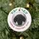 Celebrate your dog at Christmas with this charming personalized photo ornament. Add your own photo and change any of the text to customize. With pretty holly sprigs and modern text in festive red, it beautifully showcases your favorite photograph of your puppy or dog, making it a perfect keepsake for pet lovers. Hang it on your tree to add a special touch to your holiday decor and cherish the memories for years to come.
