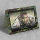 A simple photo military passing out greeting card featuring a camouflage army background, the word "congratulations", and the name of the soldier.