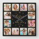 Personalized Photo Collage Besties Gold Black Square Wall Clock