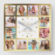 Personalized Photo Collage Besties Gold White Square Wall Clock