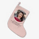 Personalized Photo Memorial cute feminine pink Small Christmas Stocking, a simple and modern design with sans-serif oldstyle distressed font, custom name, date and photos. Avaiable in small, medium, large and huge sizes, in squared and round shapes. No minimum order.