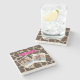 The coasters are gorgeous, a quality feel and heavy weight. They look like a precious archeological find. A rustic stone juxtaposed with a modern floral black and white print. I like the way the print goes slightly imperfect on the cut stone edges giving them a kind-of natural beauty.