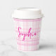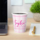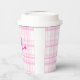 These personalized pink plaid paper cups feature a soft aesthetic checkered background with a stylish custom name, making any party setup look cute and coordinated.