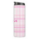 Cute pink plaid thermal tumbler with a custom name. Perfect for hot and cold drinks on the go with an aesthetic preppy style.