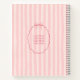 A soft and elegant design featuring pink stripes and a delicate ribbon frame. You can personalize the front text with a name or meaningful phrase to make it uniquely yours. The back cover also includes a framed space where you can add your own custom message or quote for an extra personal touch. The gentle color palette and classic layout create a timeless aesthetic. Perfect for daily writing, planning, or as a thoughtful personalized gift.
