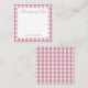 Personalized stationery enclosure notecard with a pink gingham pattern in notes of dark deep and vibrant rose pink bubble gum and white with the sentimental words "Thinking of You". Tuck it into a flower bouquet or meaningful gift. These minimal flower shop inspired enclosure cards bring a retro kitchen vibe to your most thoughtful moments.
