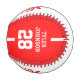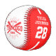 Celebrate team pride with this personalized red and white team baseball, designed for players, coaches, parents, and fans. This custom sports keepsake features your team’s logo, the player’s name, and their jersey number, all styled in a bold athletic layout with a clean sporty line running through the design.