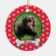 Personalize this paw print photo ornament with your pet's photo. There's a paw print background in festive holiday colors. There's a large bone where you personalize with your pet's name.