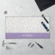Create a workspace that feels calm, beautiful, and inspiring with this personalized purple floral desk mat. Featuring a soft pattern of lavender-toned wildflowers and gentle greenery, this desk pad brings cottage garden charm and refined elegance to your desk. Easily personalize with your name in script calligraphy to make your workspace feel thoughtfully curated and uniquely yours. It's also a lovely all-occasion gift for anyone who loves florals and the cottagecore look.